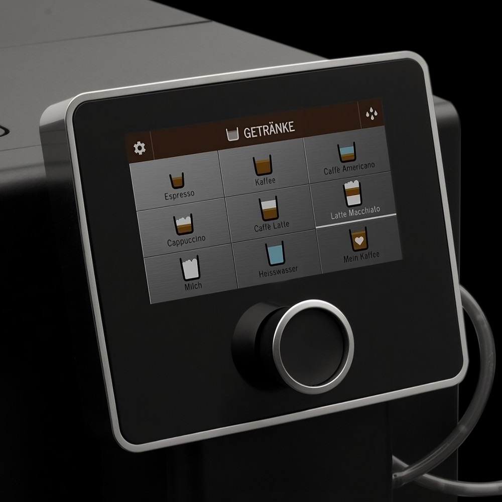 Благодаря большому (5-дюймовому) цветному сенсорному дисплею управление кофемашиной и процесс приготовления кофе становятся настоящим удовольствием. При приготовлении кофейных напитков вы можете следить за всем процессом заваривания кофе, отображаемым на экране. Вы можете выбрать один из двух способов управления: с помощью сенсорного экрана или вращающейся ручки.